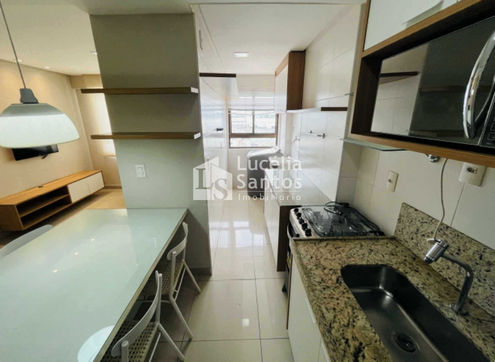Sala de estar/jantar Cozinha/área de Serviço 01 Suíte Área técnica para colocação dos condicionadores de ar Split 01 vaga de garagem coberta Totalmente Mobiliado