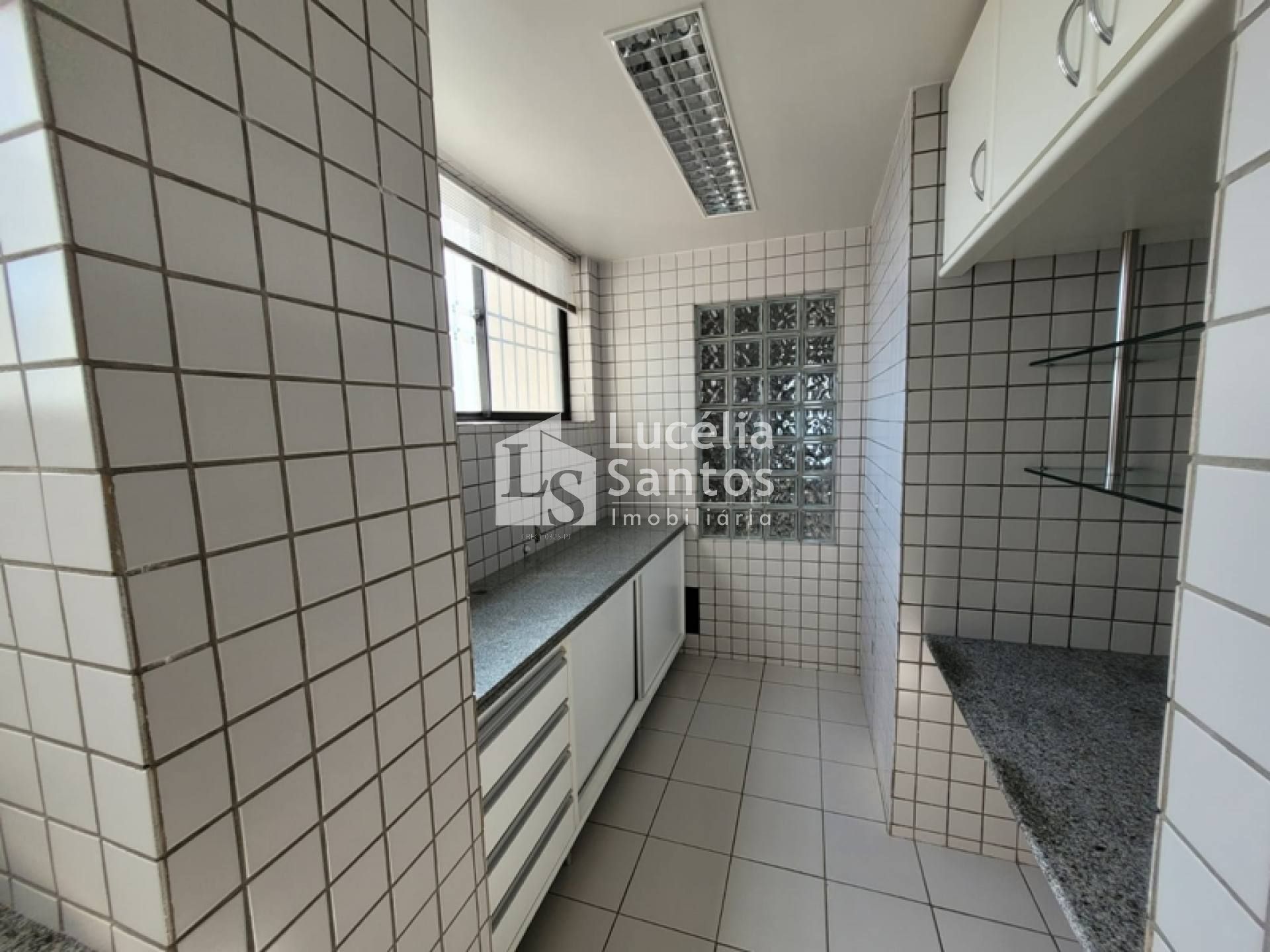 Apartamento de 124,10 m² com sala de estar/jantar com varanda, três suítes, um banheiro com banheira, cozinha e área de serviço.